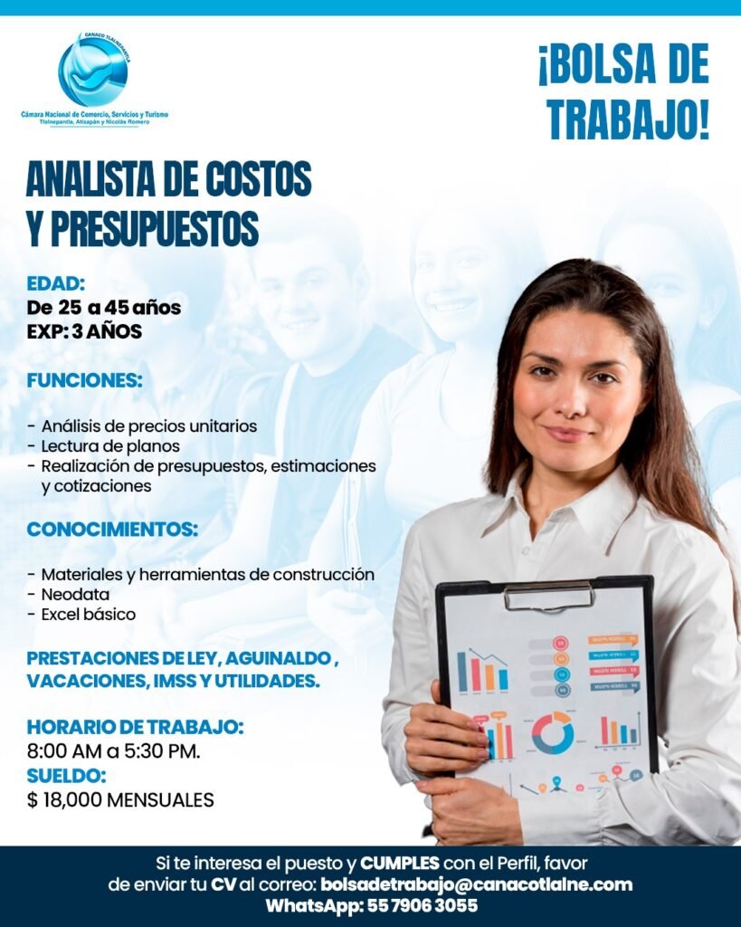 CANACO TLALNEPANTLA  // Analista de costos y Presupuesto